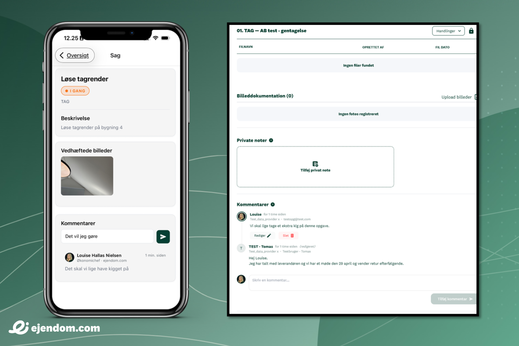 Du kan nu tilføje kommentarer på alle opgaver og sager fra sagsindberetningen. Alle kommentarer samles i et kommentarspor nederst. Under notifikationsindstillinger kan du vælge at få besked på platformen via vores ringeklokke eller på mail, når der tilføjes nye kommentarer. Du kan redigere og slette dine egne kommentarer, men ikke andres. I PropManager kan du tilgå og tilføje kommentarer på sager direkte i appen.