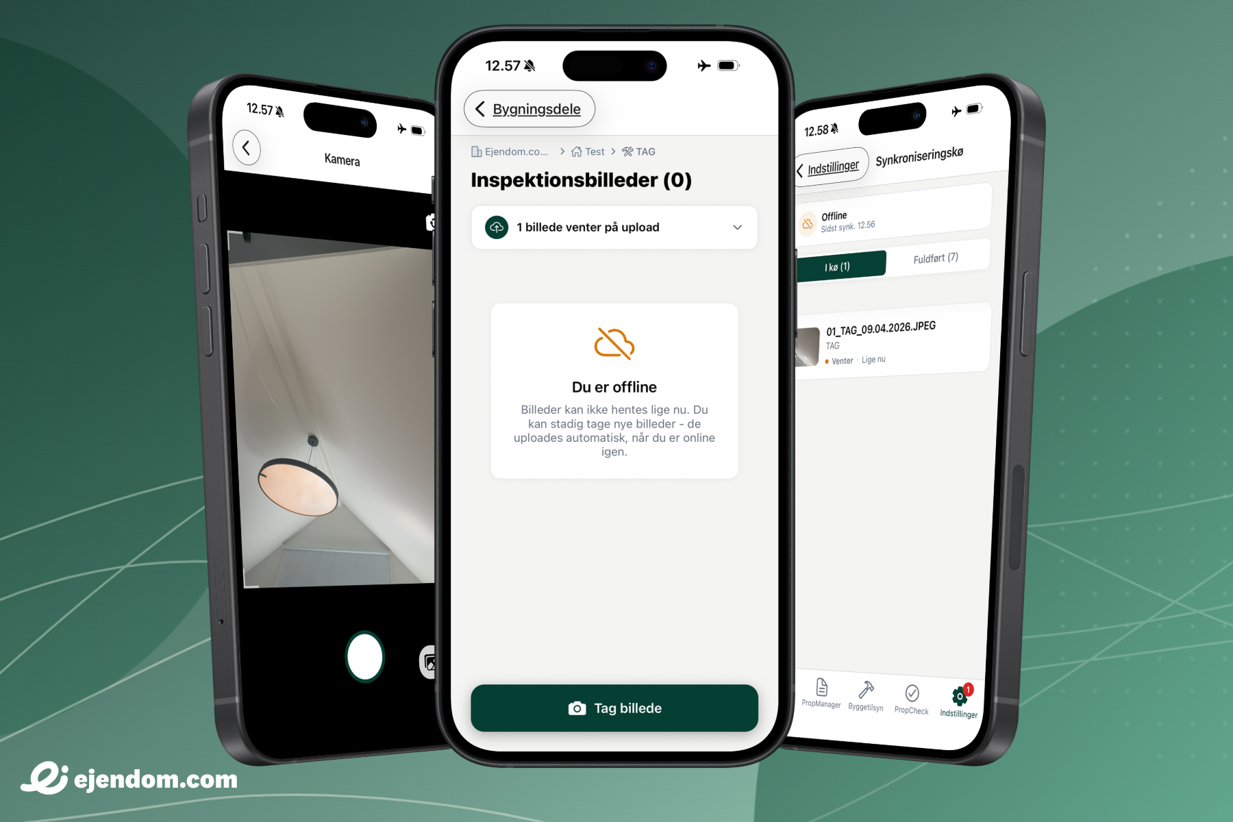 Du kan nu arbejde offline i appen i PropInspect og Byggetilsyn og snart også PropCheck. Offline aktiveres automatisk, så du kan fortsætte inspektioner og tage billeder uden forbindelse. Appen gemmer alt og uploader automatisk, når du er online igen. I indstillinger kan du følge synkroniseringskøen og se, hvad der mangler upload. Du er dermed ikke længere begrænset af dårlig forbindelse, fx i kældre eller på lofter.