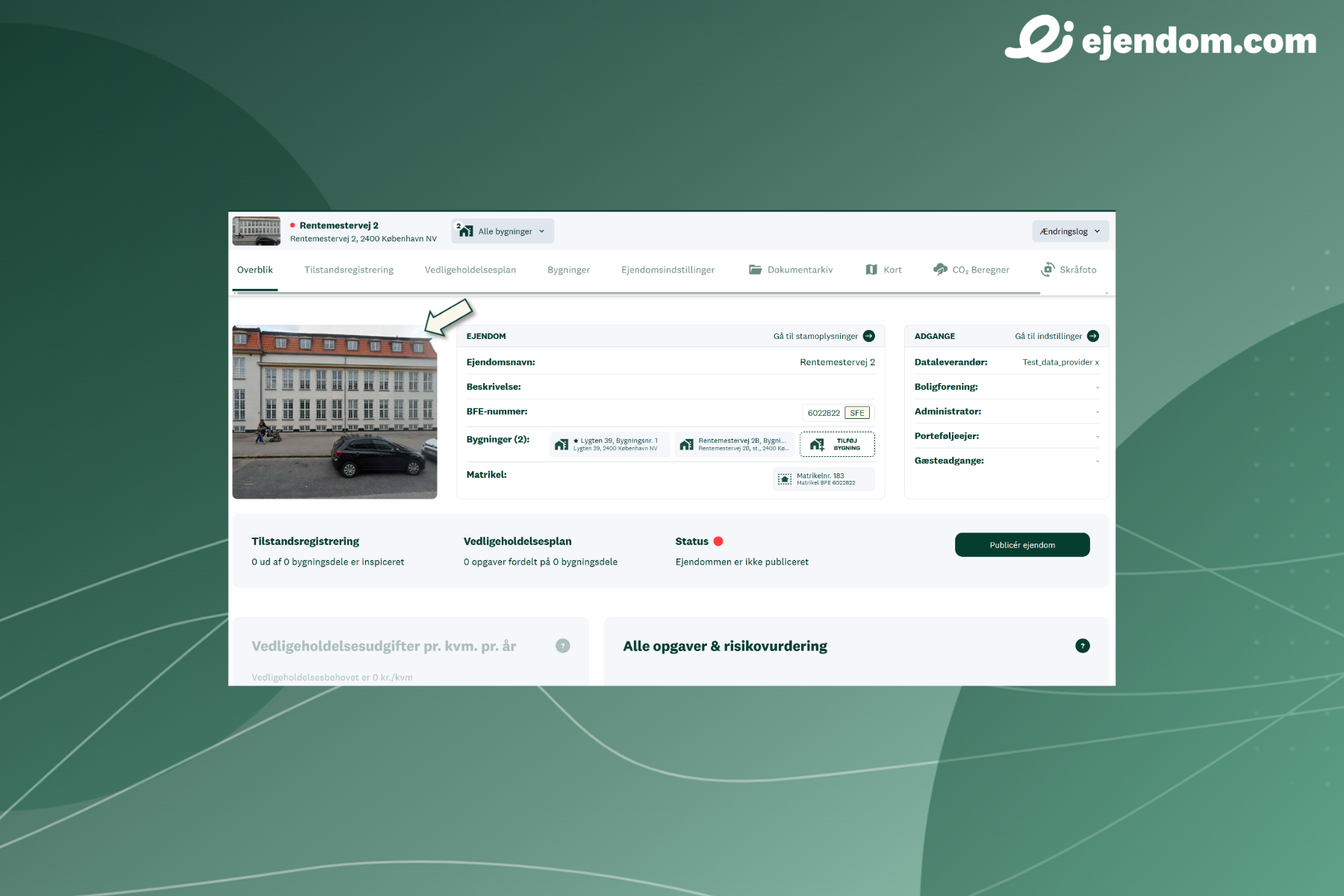 Alle nyoprettede ejendomme tildeles automatisk et ejendomsbillede, der genereres fra Google Street View ved oprettelse. Ejendomsbilledet kan til enhver tid udskiftes manuelt ved at uploade et nyt billede.